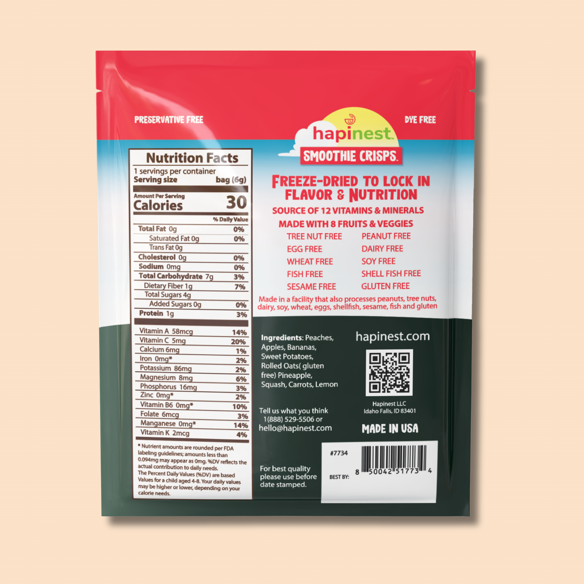 That’s why we expanded into snacks, bringing the same heart and playfulness to food. Today, our freeze-dried fruit & veggie bites are made with 100% real ingredients, no added sugar, and no junk—just colorful, delicious snacks that nourish bodies and fuel joy. From playroom to lunchbox, Hapinest helps families thrive.