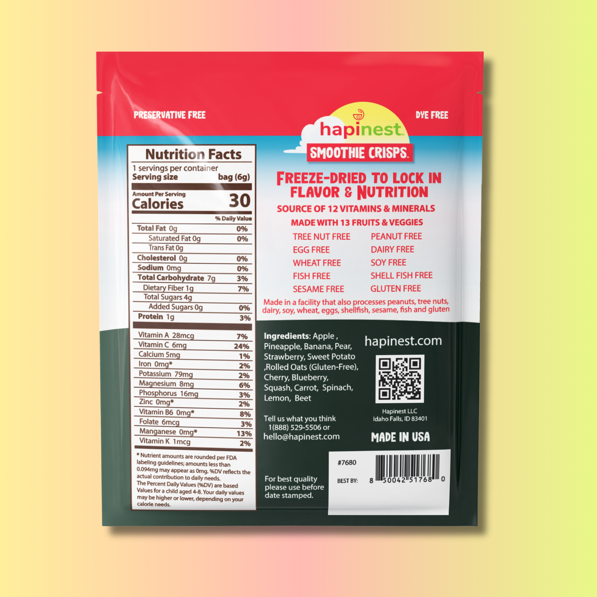 That’s why we expanded into snacks, bringing the same heart and playfulness to food. Today, our freeze-dried fruit & veggie bites are made with 100% real ingredients, no added sugar, and no junk—just colorful, delicious snacks that nourish bodies and fuel joy. From playroom to lunchbox, Hapinest helps families thrive.